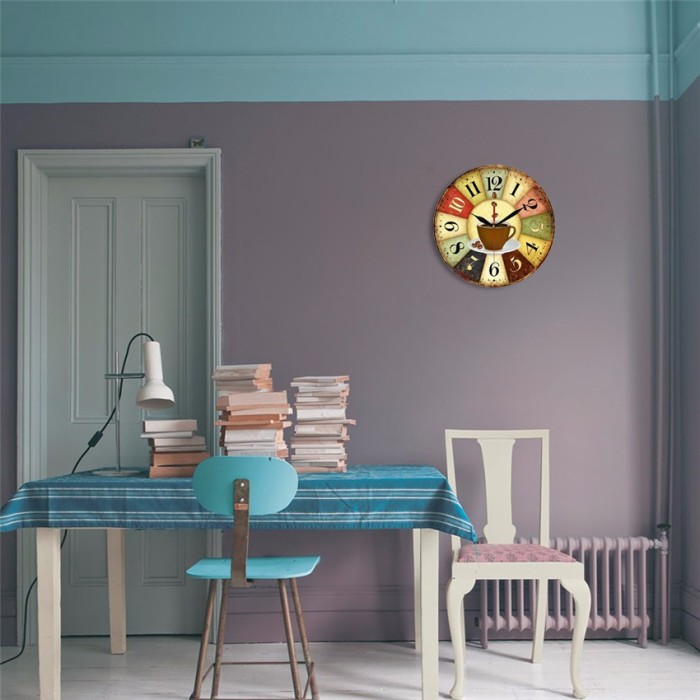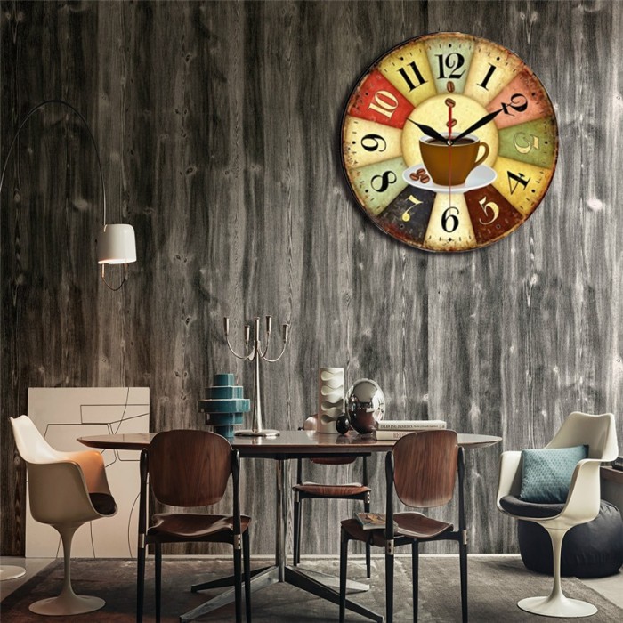 Jam Dinding Unik Bulat Vintage Coffee Design 30cm Quartz Sweep