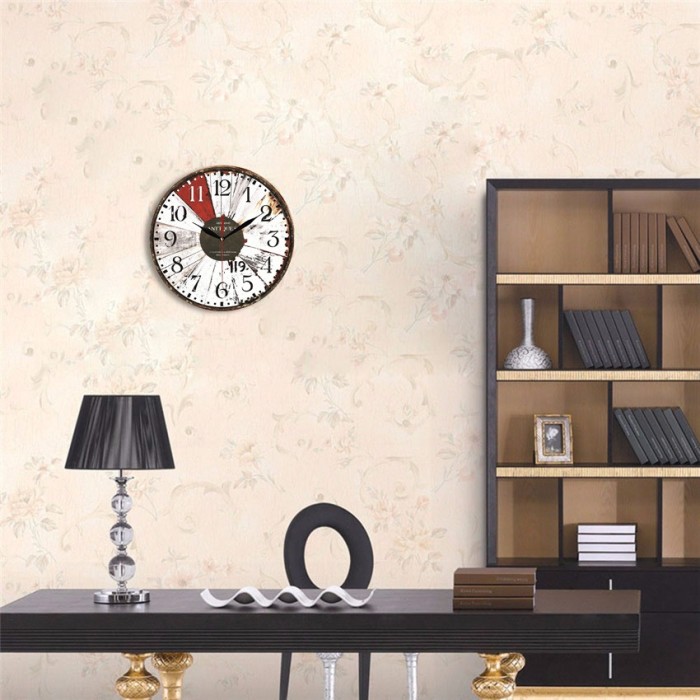 Jam Dinding Unik Vintage Klasik Kayu Retro Eropa 30cm Quartz Sweep