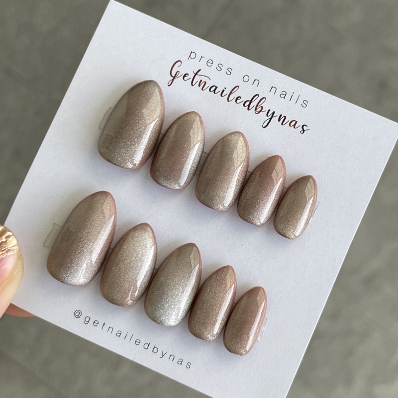 MOCCA CATEYE PRESS ON NAILS / FAKE NAILS / KUKU PALSU / WEDDING NAILS / HANDMADE NAILS