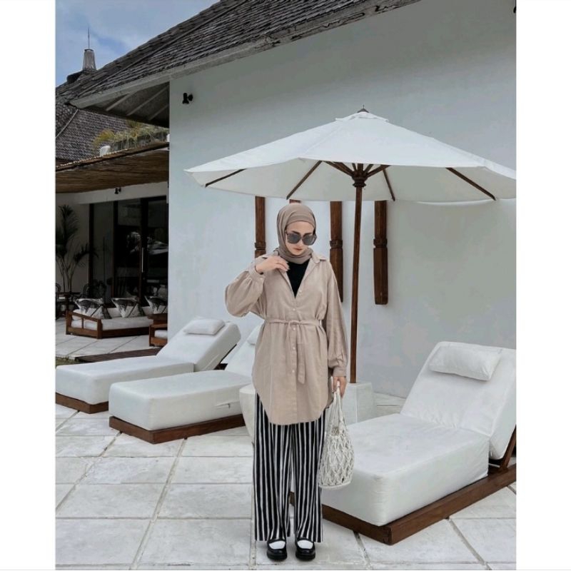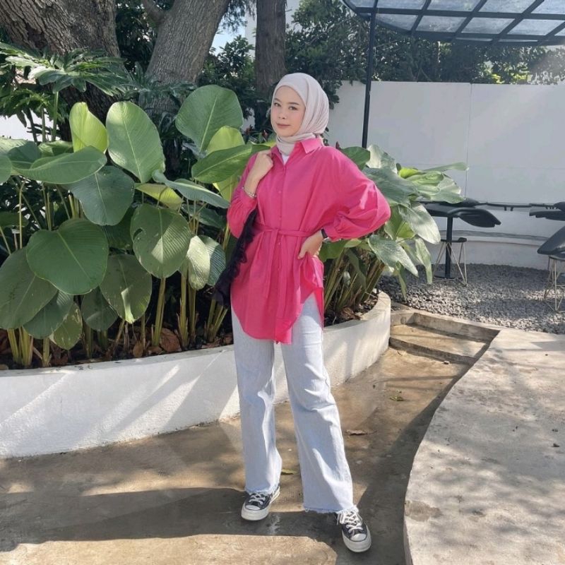 Malka Shirt - Kemeja Oversize Wanita - Oversized Shirt Linen - Atasan Tali Linen
