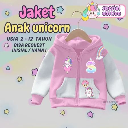 GRATIS ONGKIR / JACKET ANAK / TERLARIS /JAKET ANAK CEWE INISIAL A - Z / BISA REQUEST HURUF REQUEST NAMA UNICORN PELANGI