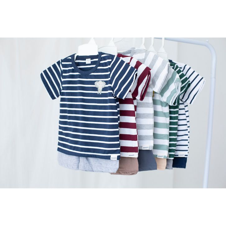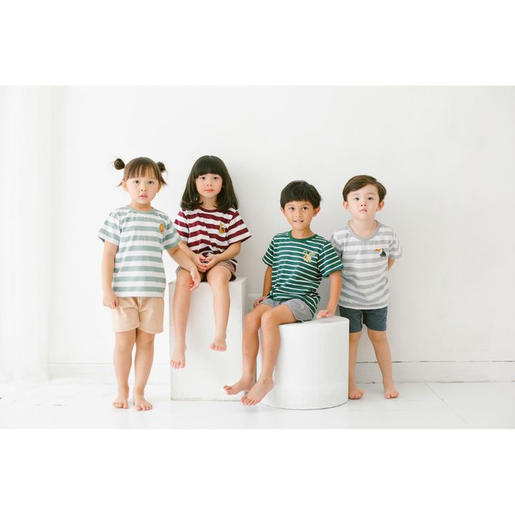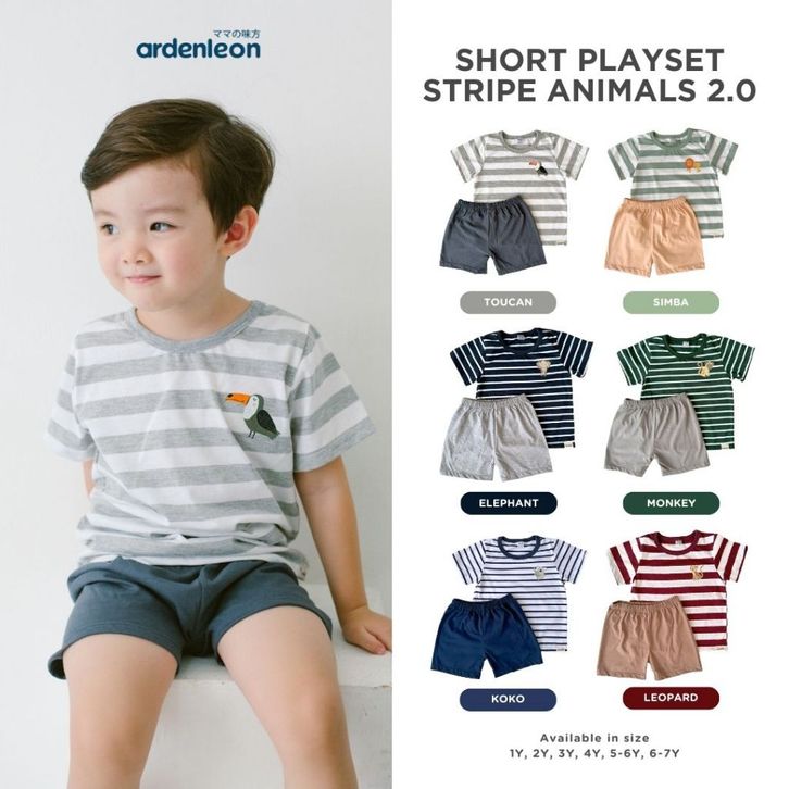 Setelan Anak Laki Laki Perempuan Baju Kaos Anak Short Playset Stripe Animal