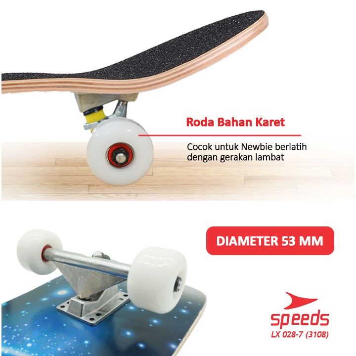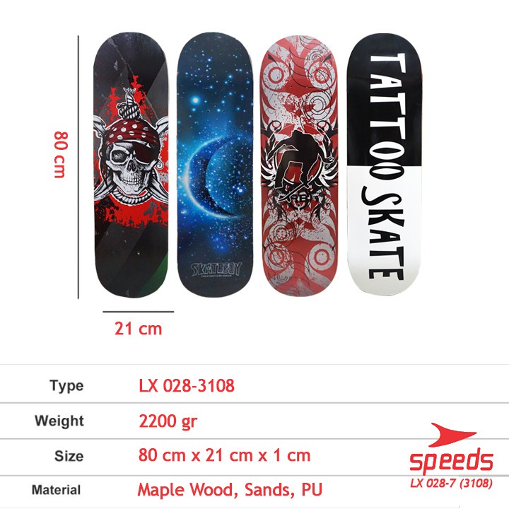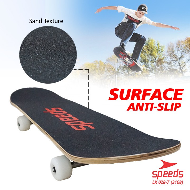 SPEEDS Skateboard Papan Skate Luncur Pasir Kasar Dewasa Kuat Roda Karet Type PU Import Papan 028-3108 31in