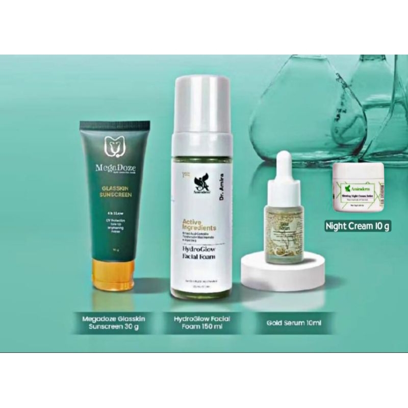 AMIRADERM MEGADOZE SUNSCREEN/FACIAL FOAM/GOLD SERUM/NIGHT CREAM (ORIGINAL BY DOKTIF)