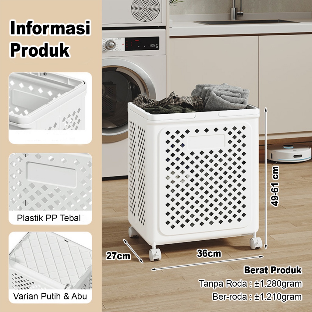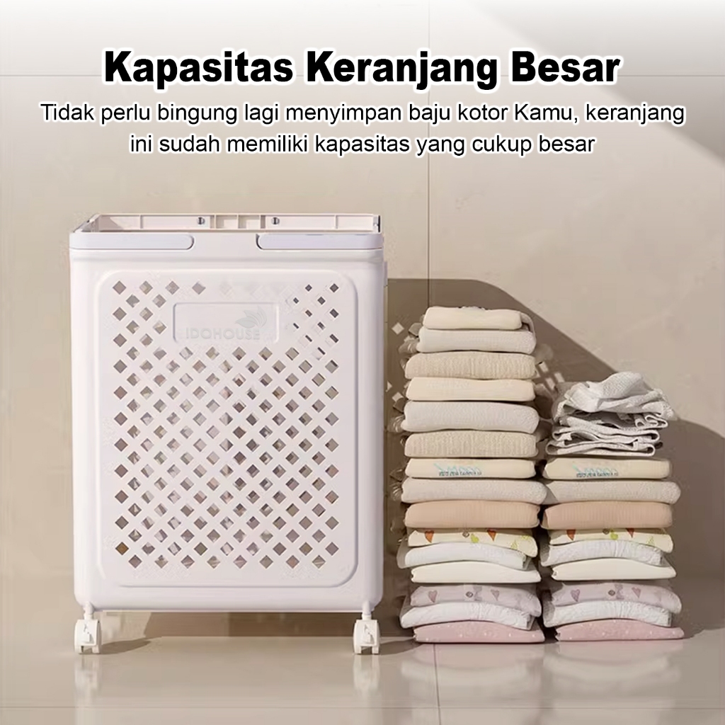 BARITOINDO Laundry Keranjang Baju Kotor Lipat Roda Aesthetic Tempat Penyimpanan Cucian Pakaian Anak Bayi - A121B121