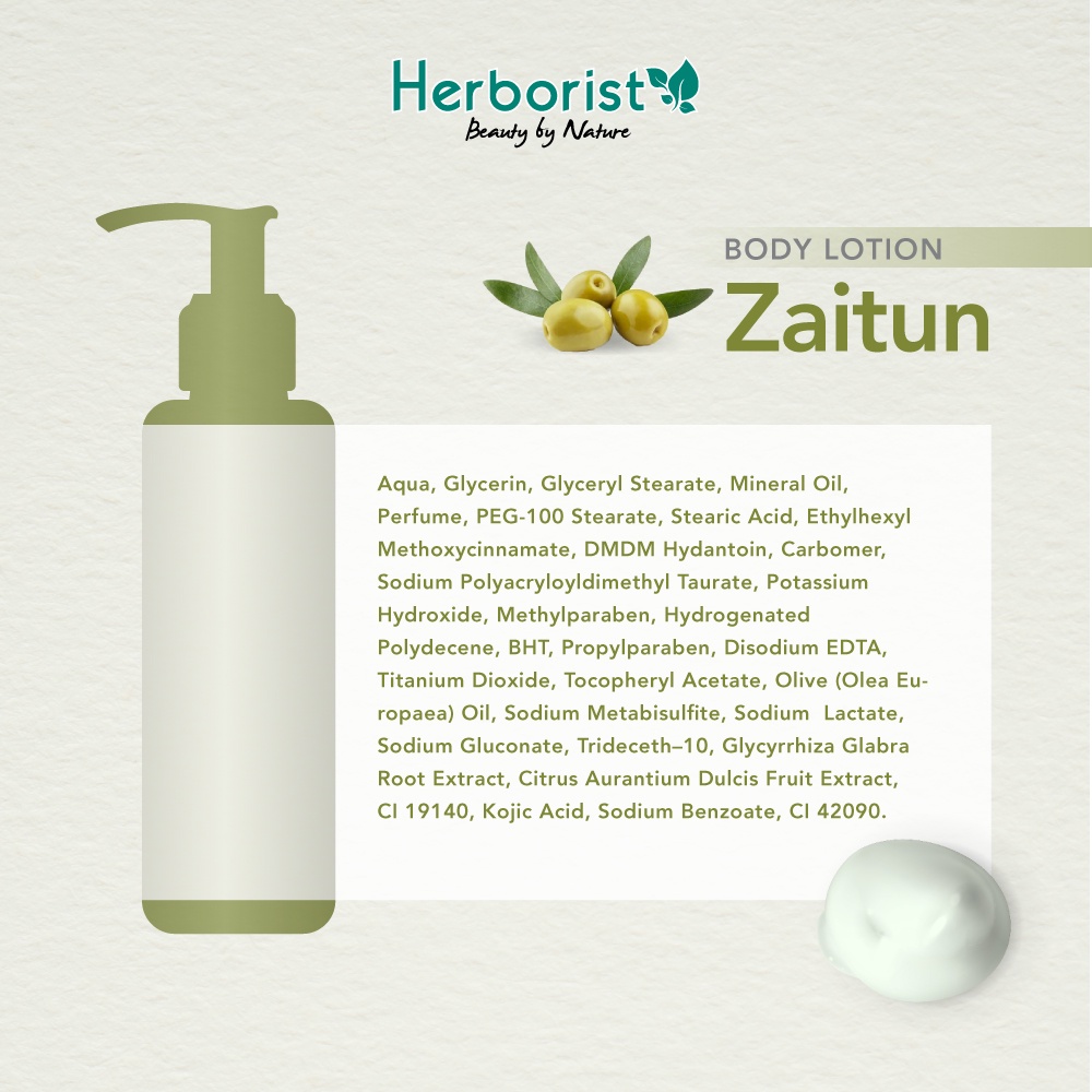 pemutih badan permanen HERBORIST BODY LOTION ZAITUN 145ML MENCERAHKAN & MELEMBAPKAN KULIT