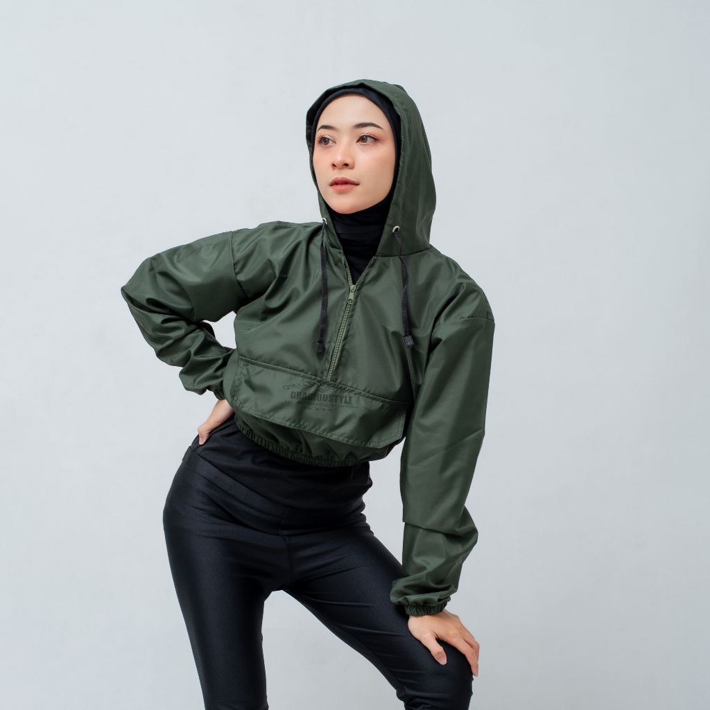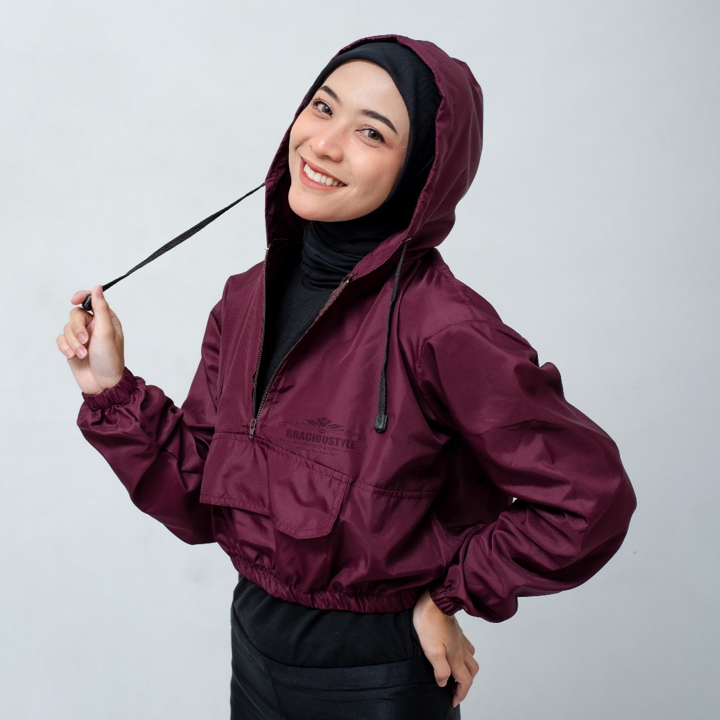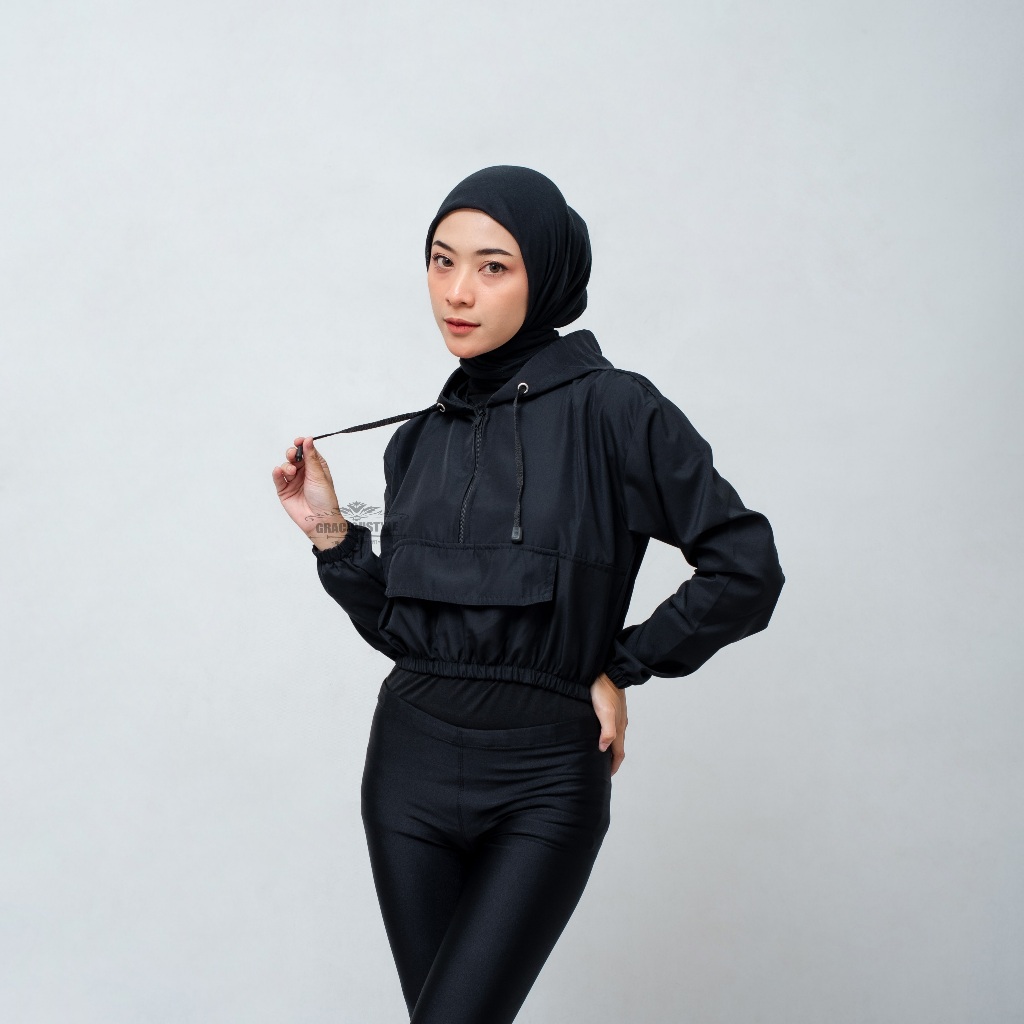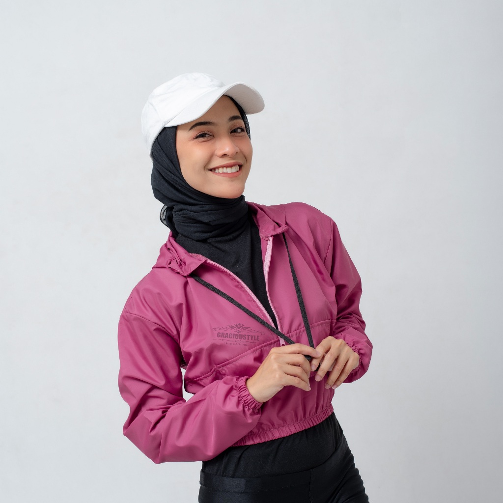 Jaket Olahraga Wanita Jaket Crop Top Polos Jaket Parasut Olahraga Crop Sauna suit