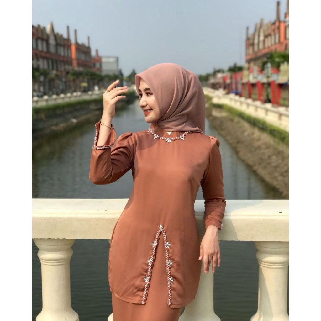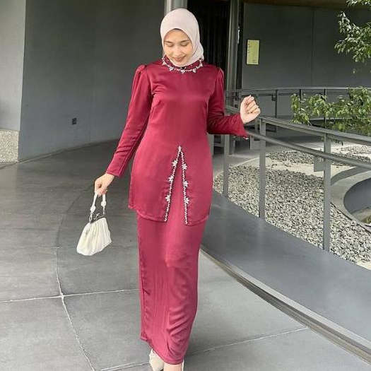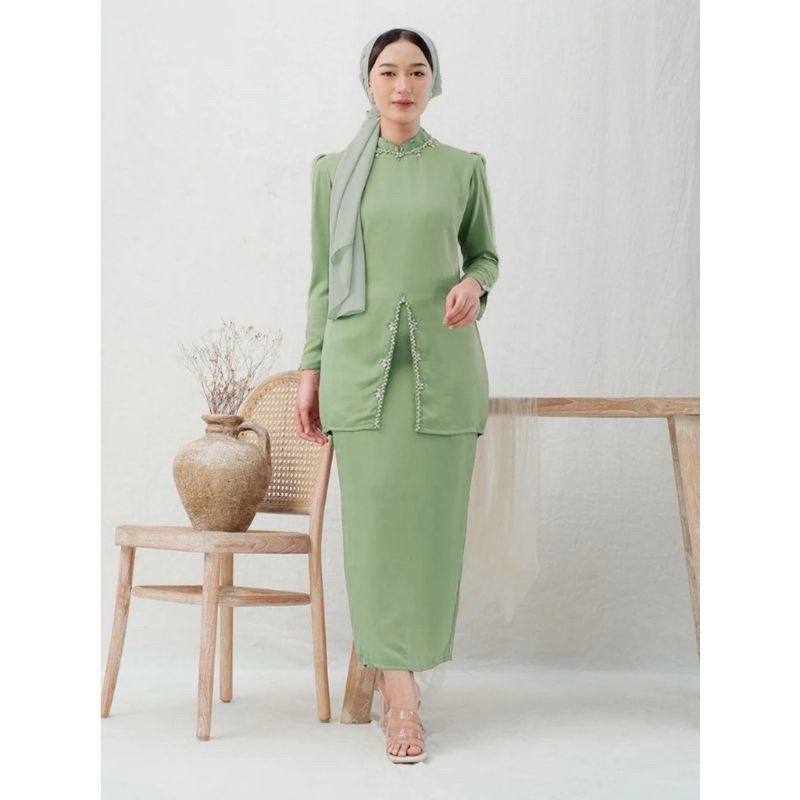 (FLASH SALE)(ADA JUMBO) Oneset Elliza Kurung Melayu Dress Pesta Wanita Baju Kondangan Kekinian Full Payet 2024