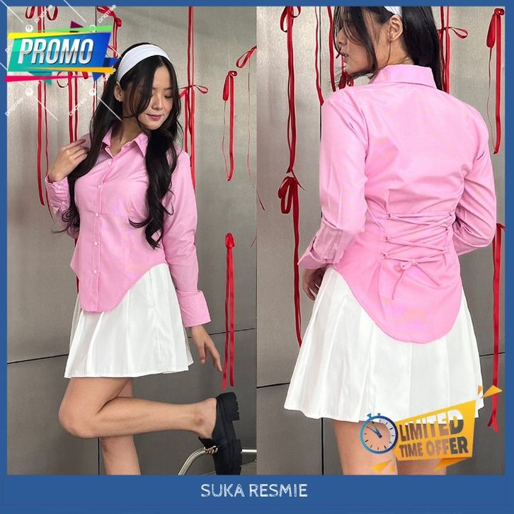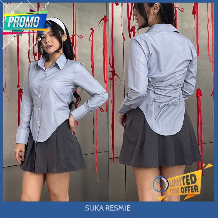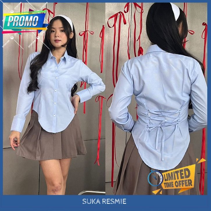 Missie - Selena Kemeja Blose Wanita Slim Fit Long Sleeve Tali Belakang