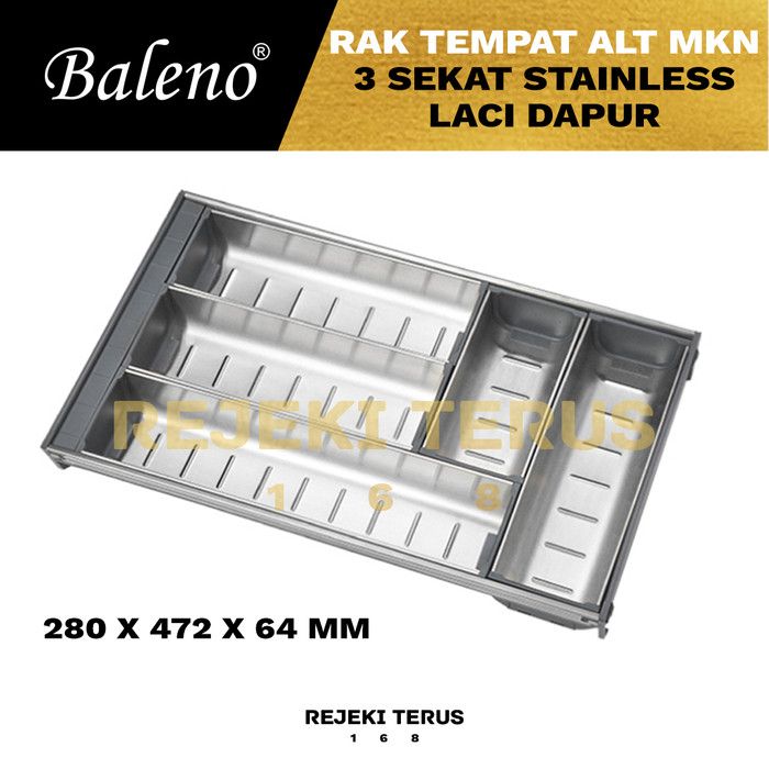 Rak Tempat Sendok Alat Makan 3 Sekat Stainless Laci Dapur Pisau