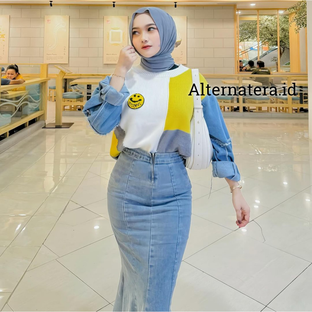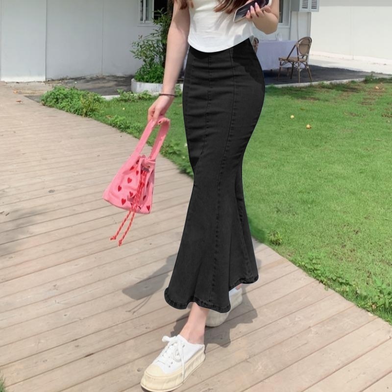 Rok Jeans Panjang Wanita Duyung Rok Span Denim Rok Jeans Polos - HightWaist Rok Panjang Denim Wanita Mermaid Melar Jumbo