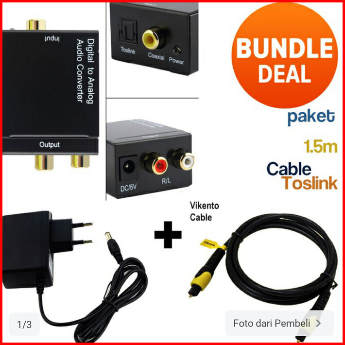 Paket Kabel Optik Toslink Conventer Optik Audio To Rca Analog Audio