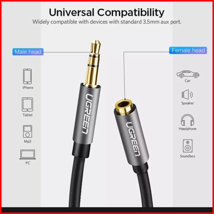 Ugreen Sambungan Kabel Audio 3.5mm Male Female Extension Aux Jack 5m