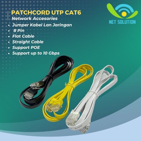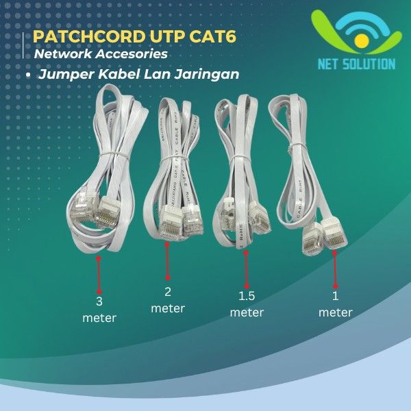 Patchcord UTP Cat 6 Slim Warna | Jumper Kabel LAN Jaringan 1m - 3m - Putih, 1 Meter
