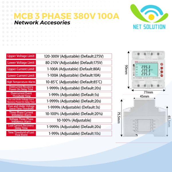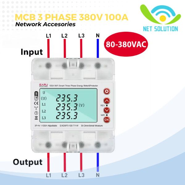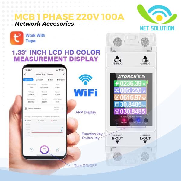 Smart Tuya MCB ELCB kWh Meter Watt Meter Digital WiFi 100A