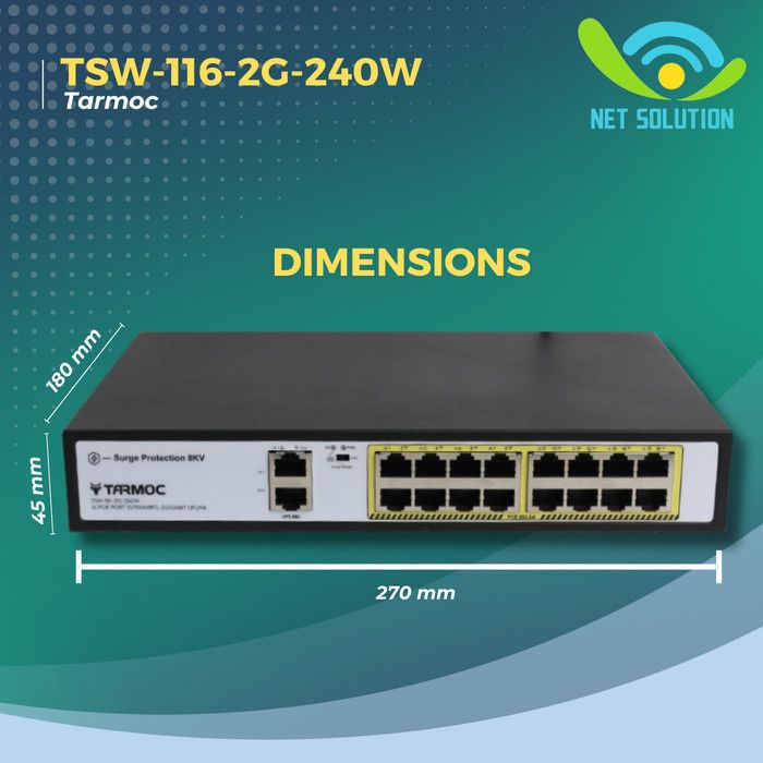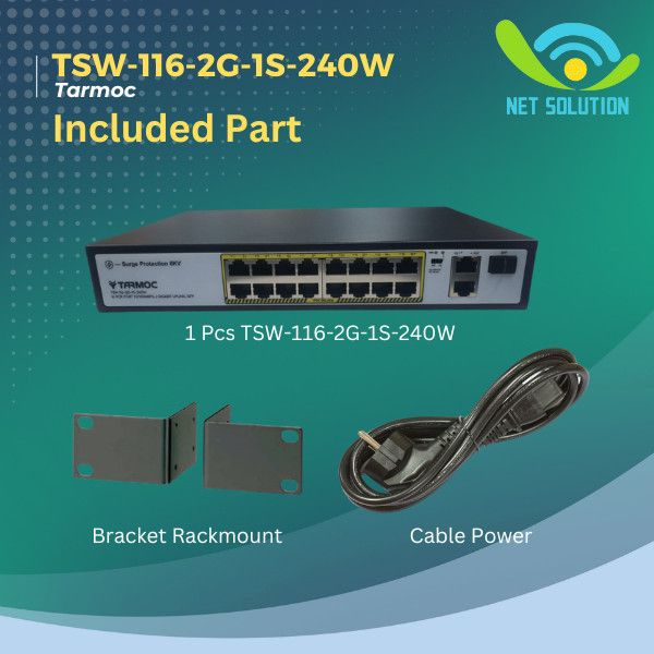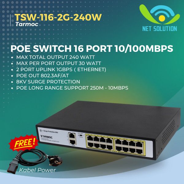 Tarmoc TSW-116-2G-1S-240W 16 Port 10/100 POE 802.3af/at POE Switch