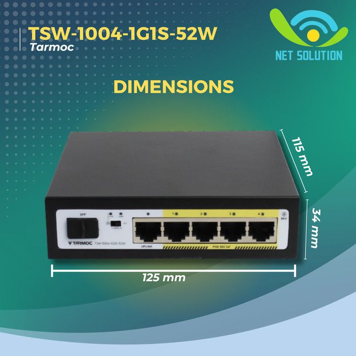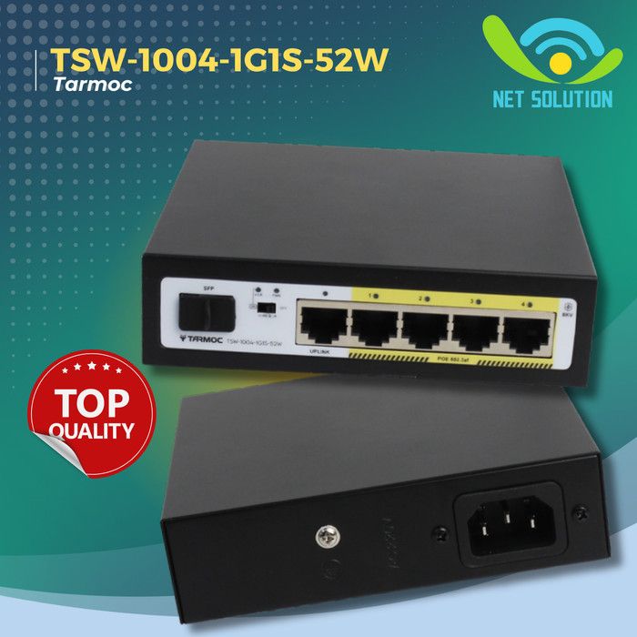 Tarmoc TSW-1004-1G-1S-52W 4 Port Gigabit POE 802.3af/at Switch 52 watt