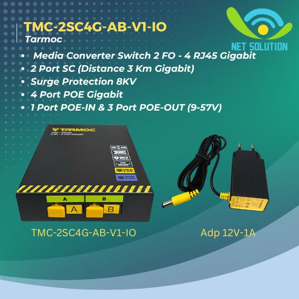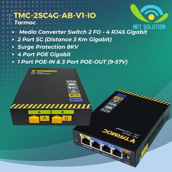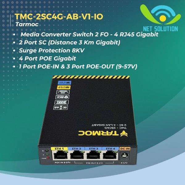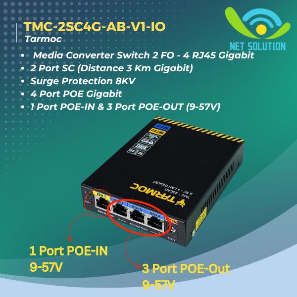 Tarmoc TMC-2SC4G-AB-V1-IO | Switch 4 Port Gigabit POE + 2 SC FO | Switch 4Port IP Camera CCTV POE in POE Out 9-57V