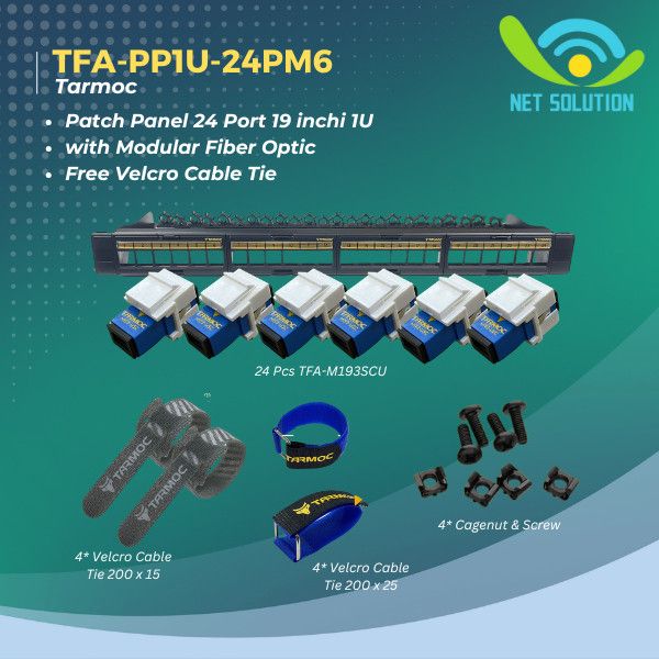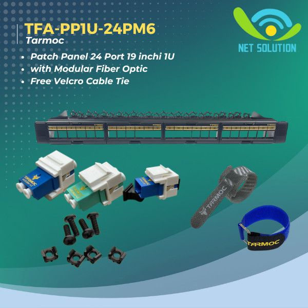 Tarmoc TFA-PP1U-24PM6 | Patch Panel 24 Port Fiber Optic FO LENGKAP Free 8 pcs Velcro tie - SC-SC SM SX 24