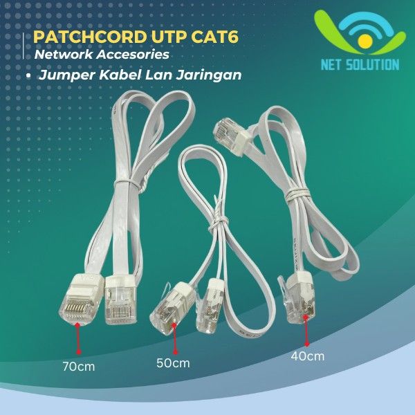 Patchcord UTP Cat 6 Slim Warna | Jumper Kabel LAN Jaringan 40cm - 70cm - Putih, 70CM