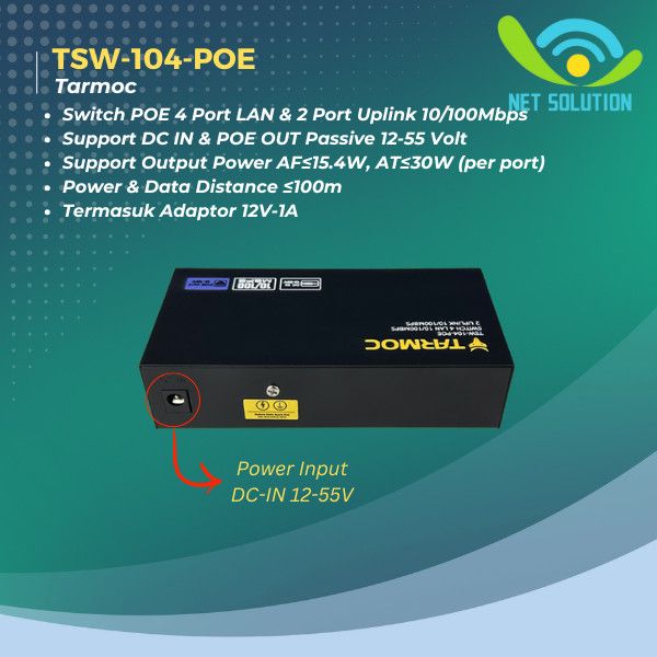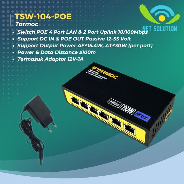 Tarmoc TSW-104-POE | Switch POE 4 Port + 2 Uplink 10/100Mbps, DC-in 12-55V - Switch POE