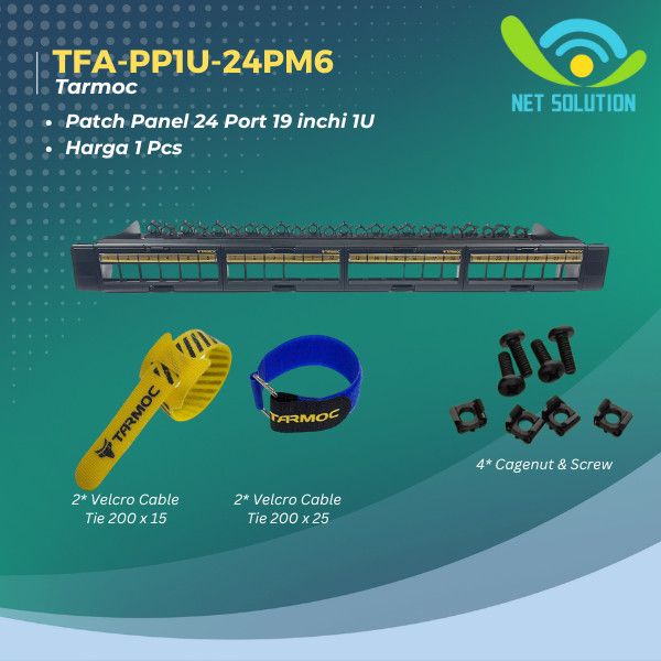 Tarmoc TFA-PP1U-24PM6 | Patch Panel 24 Port UTP Cat5 Cat6 Tanpa Modular Free Velcro Tie