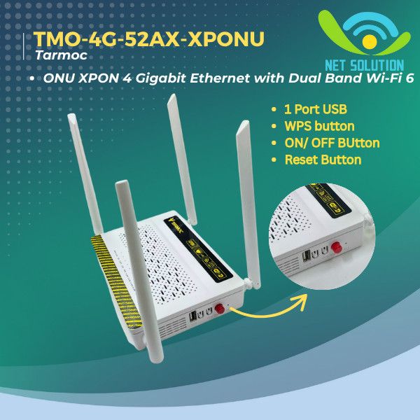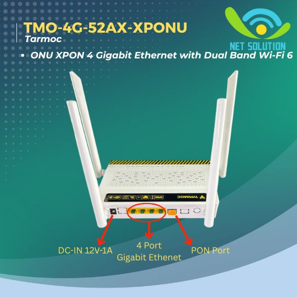 Tarmoc TMO-4G-52ax-XPONU | XPON ONT 4 Port Gigabit, Wifi6 Gpon EPON Wi-Fi 6