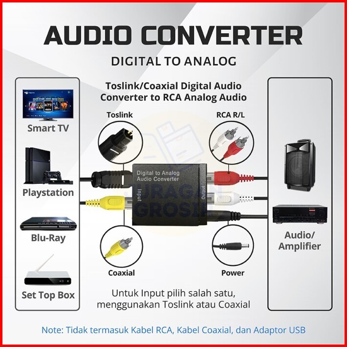 Toslink Digital To Analog Audio Converter Optical Coaxial To Rca Tv