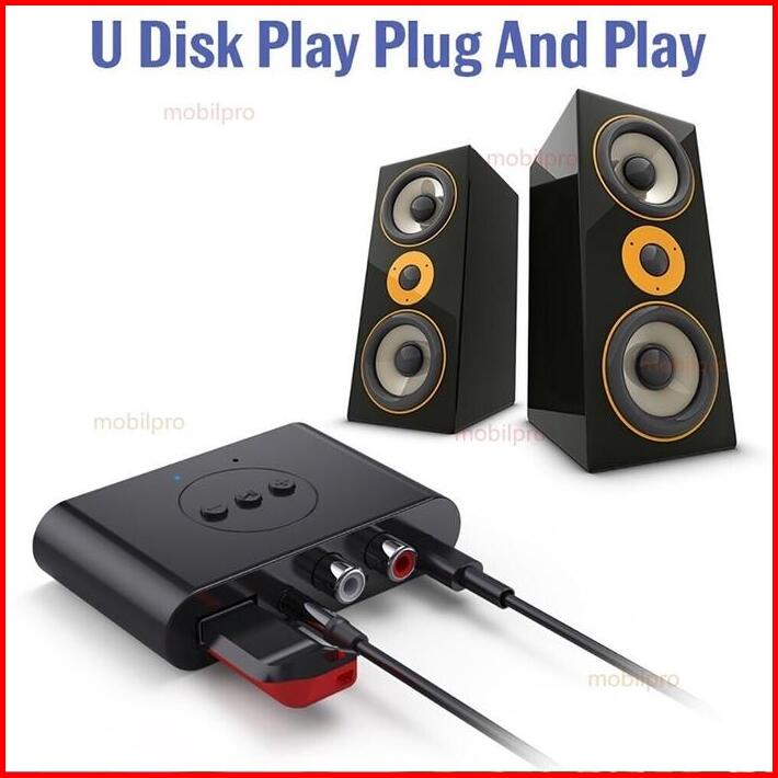 Nfc Bluetooth 5.0 Audio Receiver Rca 3.5mm Audio Usb Disk Receiver Aux Stereo Music Jack Dengan Mikrofon Untuk Mobil Kit