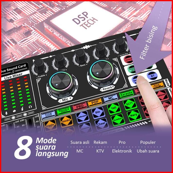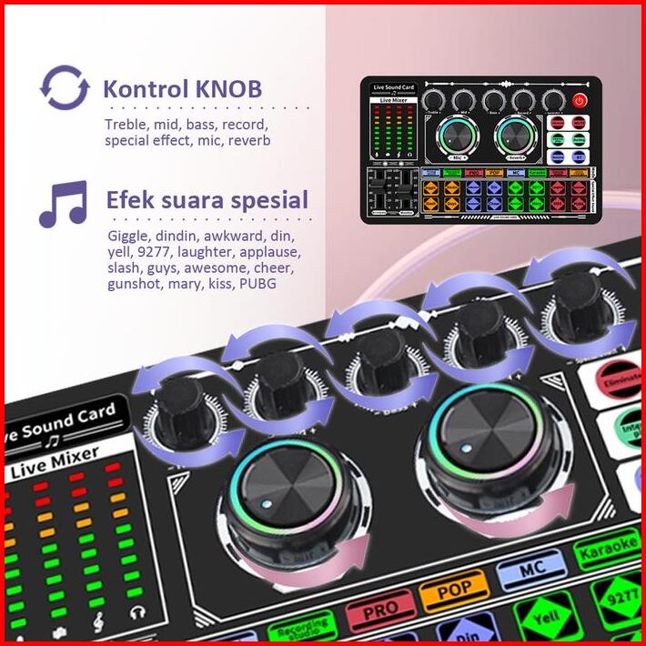 Bonkyo F999 Sound Card Mixer Periferal Komputer Untuk Audio Kartu Suara Karaoke Langsung Hp Pc Mac Soundcard Alat Laptop