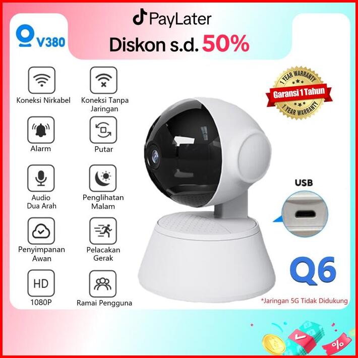 V380 Q6 Pro Putih Indoor Cctv Kamera Pengawas Rumah Hd 1080p Wifi Ip Camera Keamanan Pantau Jarak Jauh Cerdas Penglihata