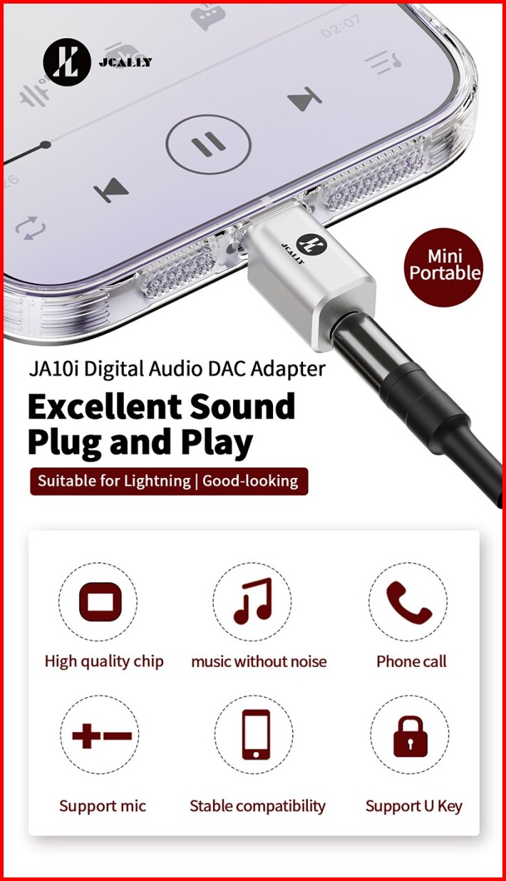 Jcally Ja10i Dac Lightning To 3.5mm Jack Audio Converter 24bits 48khz