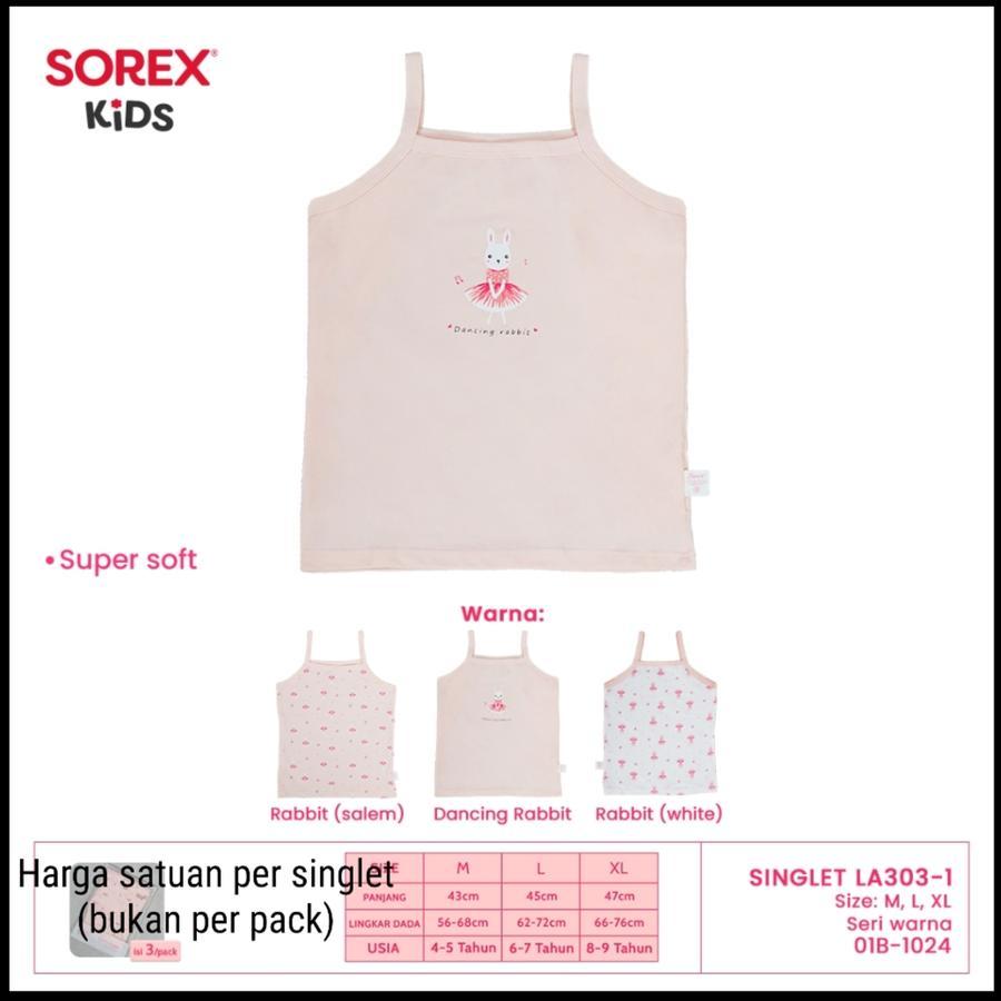 (1PCS ) SOREX SINGLET KIDS GIRL SERIES LA 303 RABBIT ATASAN TANKTOP ANAK PEREMPUAN TALI KECIL (M L XL)