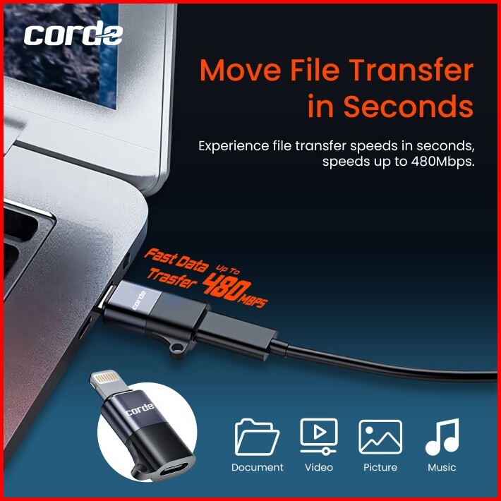 Corde Converter Type C To Apple Lightning 2.0 Support Audio Voice Data