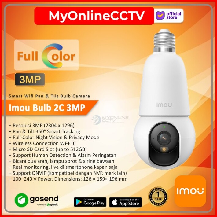 Imou Bulb 2c 3mp Ip Camera Bolam Wireless Wi-fi Color Night 2 Way Audio Alarm Ptz Cctv Praktis
