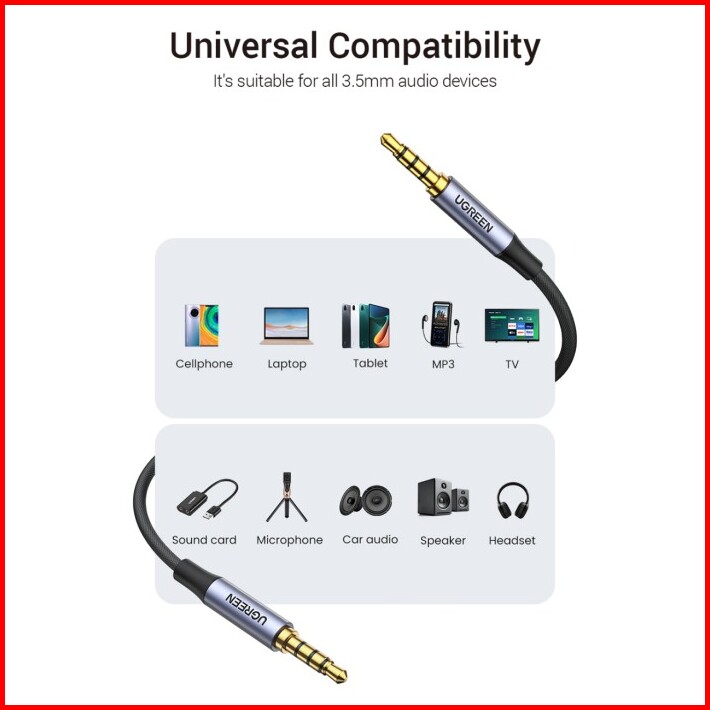 Ugreen Kabel Aux Audio Extension 3.5mm Male To Male Microphone Headphone Speaker Smarthphone Laptop Tablet Tv Sound Card