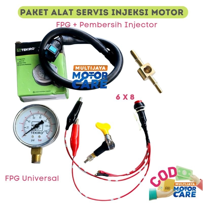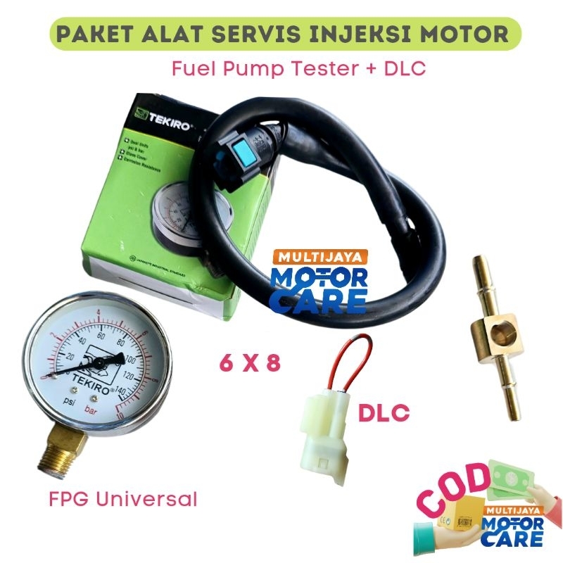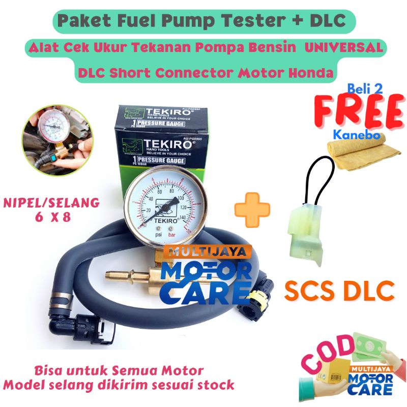 Paket Fuel Pump Tester UNIVERSAL + Alat Pembersih Injector Alat Pengukur Tekanan Pompa Bensin + DLC Short Connector LENG