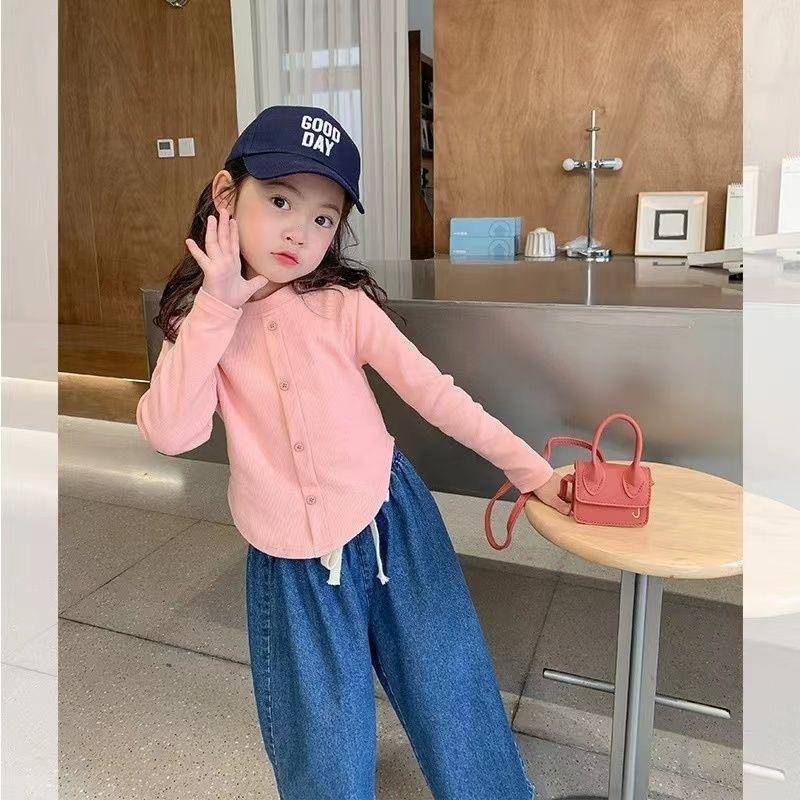 【princesscoco】1-8 Tahun Croptop Polos T-shirt Girls Spring Slim Candy Color Bottoming Shirt 2025 Female Baju Anak Peremp