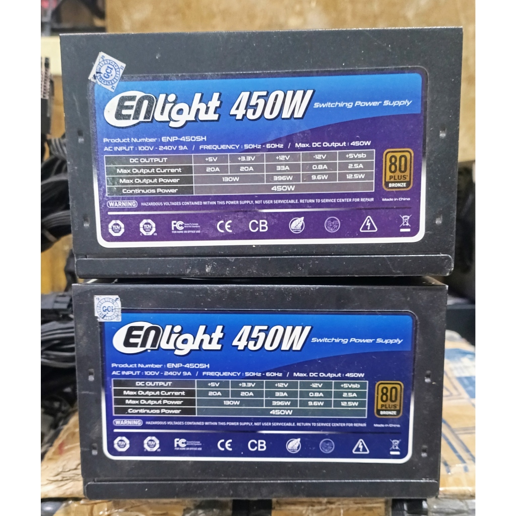 PSU Enlight 450W 80+ Bronze Bekas | Active PFC | 6+2pin VGA | Efisiensi.82–85 PERSEN | Power Supply OEM Enlight