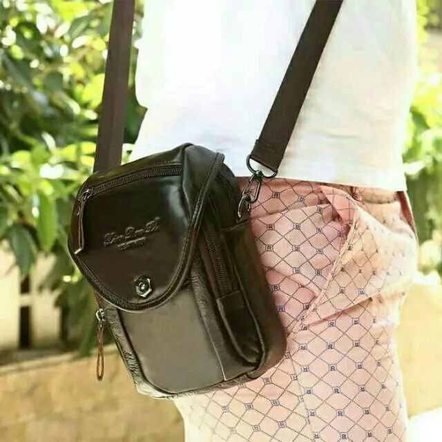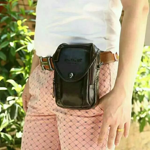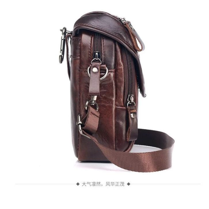 Tas Selempang Pria Anti Air Original Kulit Asli Dompet Hp Import Tas Pinggang Xiao Duo Li 0190
