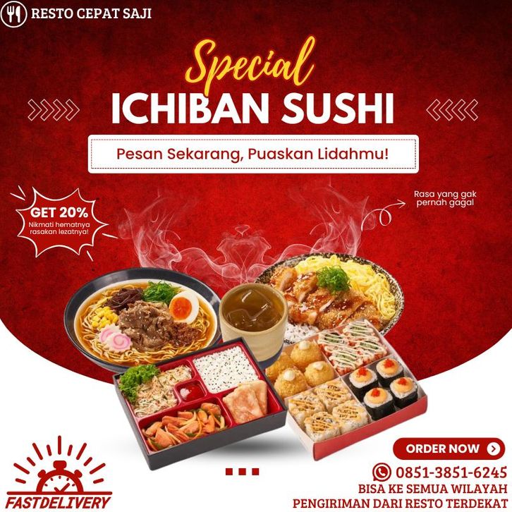 Mabar Donburi, Mabar Sushi, Mabar Ramen, Mabar Campur, FYP DONBURI, FYP SUSHI, FYP RAMEN, FYP SUSHI ATTACK, Sushi Platter Ookiikuma I, Sushi Platter Ookiikuma II, Sushi Cake (Hampers), Sushi Attack Nimura, Tekka Maki, Spicy Namazu Kani Mayo Roll, Spicy Creamy Namazu Roll, California Roll, Volcano roll, Top gun roll, Katsu roll, Fish cake roll, Beef Teriyaki Fried Roll, Beef Volkano Roll, Salmon Kani mayo Roll, Spicy Chicken Roll, Chicken Mentai Roll, Dory Mentai Roll, Tuna Mentai Roll, Katsu Spicy Cheese Roll, Dory Spicy Cheese Roll, Tuna Tartar Roll, Sushi Att4ck - Ichikuma, Sushi Attack Ichimura, Salmon roll, Deep fried roll, Salmon skin roll, Spicy Creamy Salmon Volcano Roll, Unagi Dragon Ball Roll, Sushi Attack Ganbatte, Tobiko sushi, Tamago sushi, Chuka wakame sushi, Kani sushi, Corn Mayo Inari, Japanese Salad Inari, Roasted Salmon Sushi, Salmon Yakiniku Bento, Chicken Yakiniku Bento, Chicken Katsu Curry Bento, Beef Teriyaki Bento, Chicken Teriyaki Donburi, Chicken Katsu Donburi, Beef Teriyaki Donburi, Beef Katsu Curry Donburi, Chicken Katsu Curry Donburi, Dory Katsu Donburi, Gyu Toji Donburi (gurih), Chicken Katsu Toji Donburi, Namazu Donburi, Ichi Mentai Don, Hokkaido Beef Donburi, Hokkaido Dory Donburi, Hokkaido Chicken Donburi, Karaage Mentai Donburi, Omellete Curry Donburi, Chicken Geprek Donburi, Chicken Katsu Ramen, Beef Hotplate Ramen, Chicken Katsu Hotplate Ramen, Beef Dry Ramen, Chicken Dry Ramen BP, Chicken Teriyaki Ramen, Beef Teriyaki Ramen, Spicy Ramen, Spicy Beef Ramen With Tori Paithan, Chicken Curry Paithan Ramen, Beef Paithan Ramen, Tempura Moriawase, Ebi Tempura, Agedashi tofu, Tori Karaage, Gyoza Steamed, Gyoza Fried, Miso soup, Gohan, Crispy Crab Sticks, Wakame Salad, Salmon salad, Grilled Salmon Head Teriyaki, Gyoza Spicy Soup, Spicy Tori Karaage, Crispy Spicy Crab Stick, Spicy Gyoza, Chuka wakame sashimi, Tuna Tataki, Lemon tea, Lemonade, Orange juice, Tehbotol Sosro Kotak, Ocha, Blackcurrant, Milo, Air Mineral 330 ml