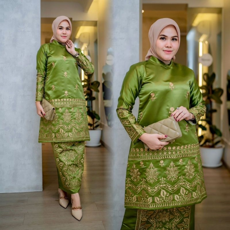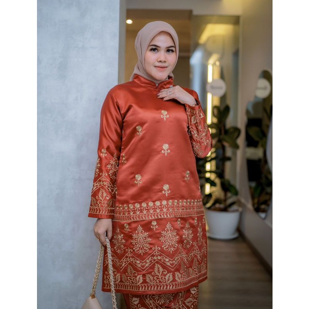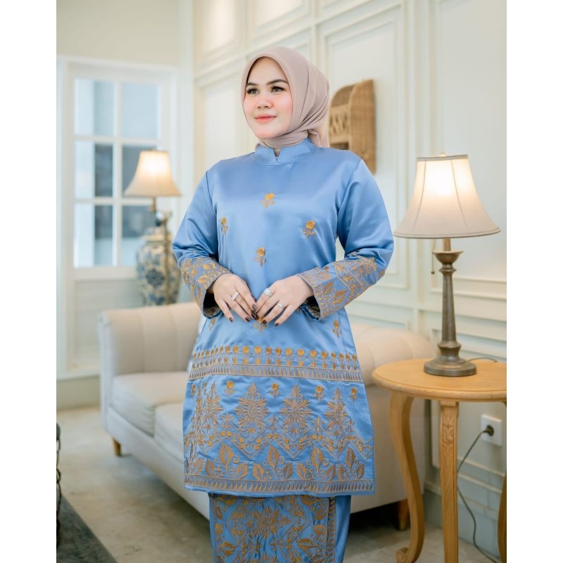 (FLASH SALE)Setelan tunik Bordir manual/baju bridal/baju pesta/baju adat/set baju kurung/ kebaya Malaysia