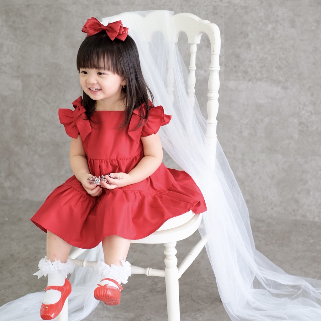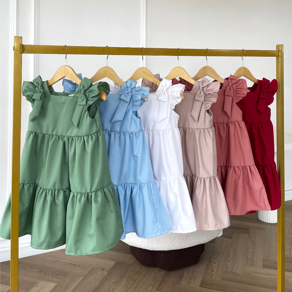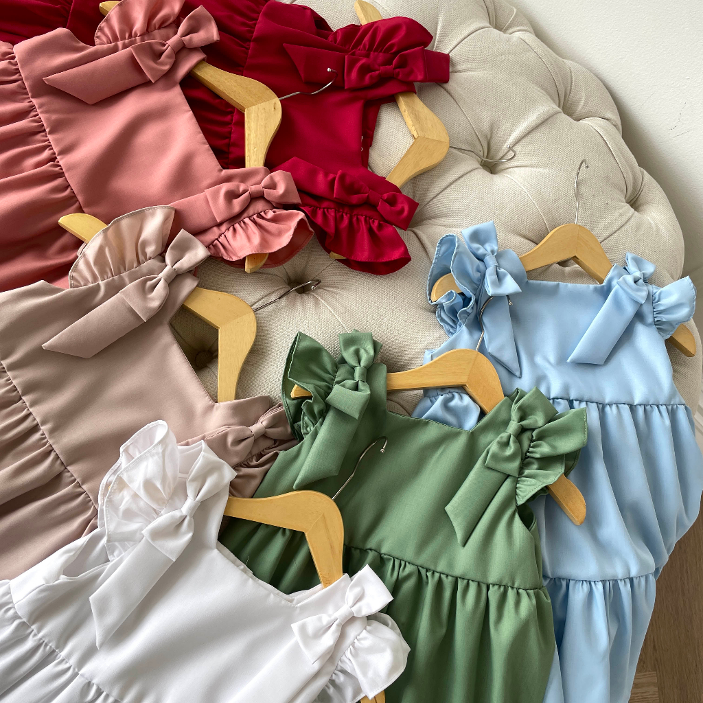 (FLASH SALE)MOONJOY MARYJANE DRESS - dress anak perempuan pita ruffle lucu pink matcha blue white red nude