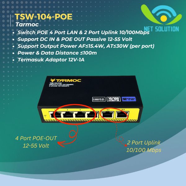 Tarmoc TSW-104-POE | Switch POE 12V 24V 48V IP Camera CCTV Mikrotik Ubiquiti - Switch POE