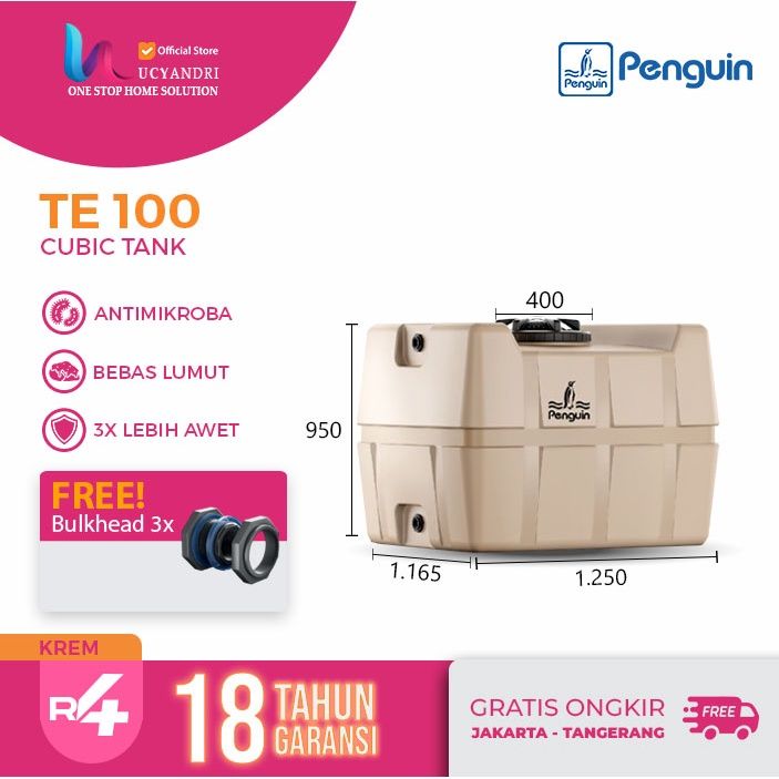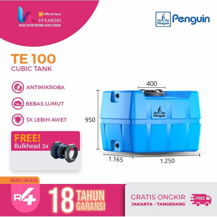 Tangki Air Penguin TE 100 | Toren Air Penguin 1000 Liter Kotak | Tangki Air Penguin 1000 Liter