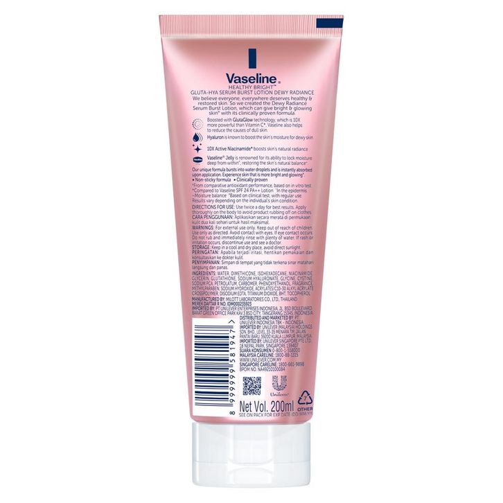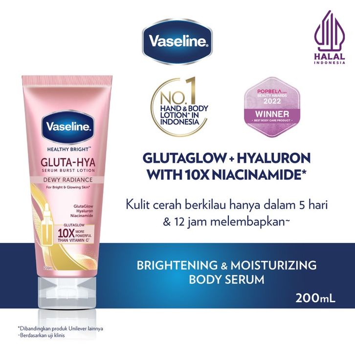 Handbody Vaseline Healthy Bright Gluta Hyaluron Niacinamide Serum Lotion Dewy Radiance 200mili