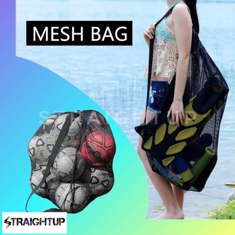 Tas Jaring Penyimpanan Bola Kapasitas Besar - Kantong Jaring Olahraga Penyimpanan Bola Sepak