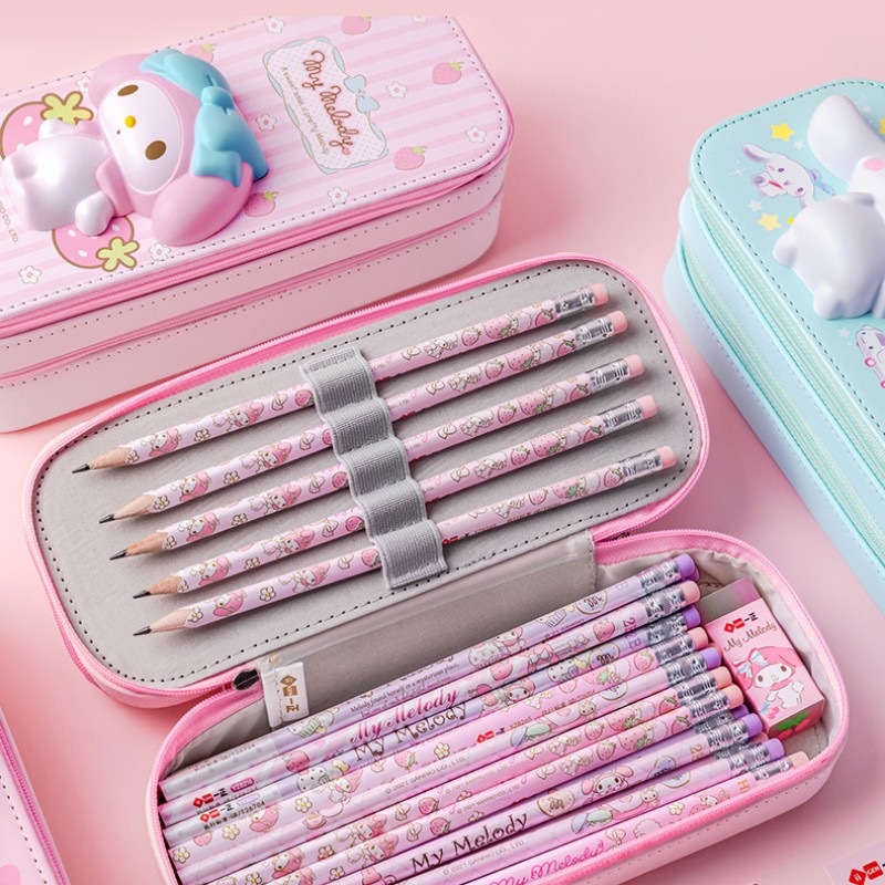 Sanrio Pu Large Capacity Pencil Case Kawaii Hello Kitty Cinnamoroll Melody School Pencils Bag Pouch Pen Case Supplies
