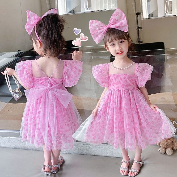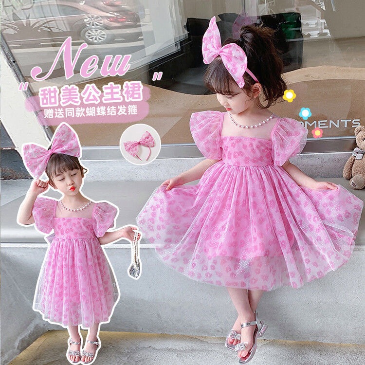 (FLASH SALE)[PRINCESS KESLI] 2-11 Tahun Dress Pesta Magenta Bando Anak Perempuan Gaun Pita Party Ulang Tahun