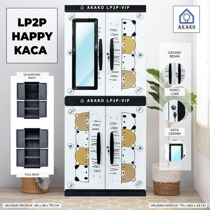 FREE ONGKIR AKAKO - LEMARI PAKAIAN PLASTIK LEMARI JUMBO (VIP)/ KODE : LP2P - VIP ( HAPPY )